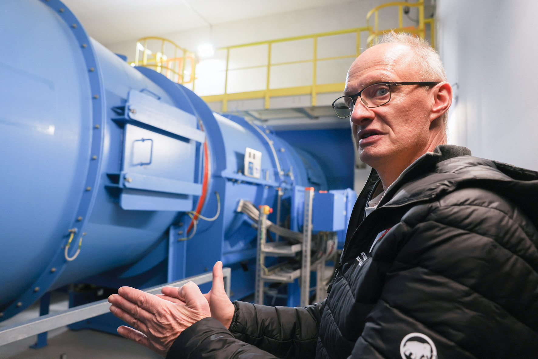 Et pour mesurer la technicité d’un tunnel, rien de tel que de s’y engouffrer. Rendez-vous est pris avec Frédéric Varone, qui nous accueille à la centrale technique située à l’entrée ouest de Viège, identifiable à ses façades couleur rouille. Nous pénétrons dans un véritable labyrinthe. Derrière chaque porte, une nouvelle découverte : chambre de ventilation, salle serveur, station de pompage, armoires techniques à perte de vue. Ici, tout est démesure.