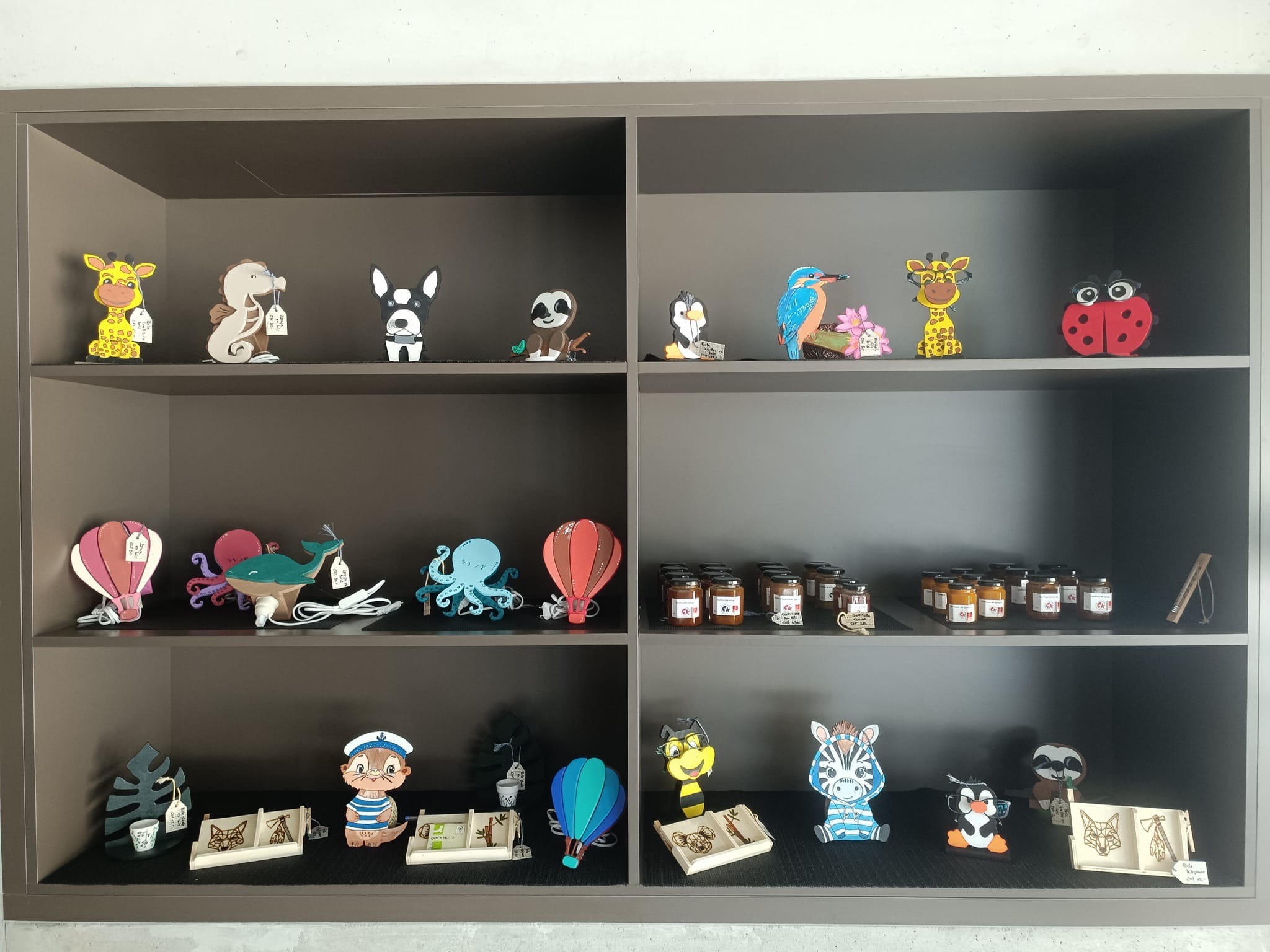 Les articles disponibles au magasin sont issus du travail effectué notamment au sein des ateliers agricoles, où sont produits des fruits, des légumes et du fromage. L’espace de vente propose également des aliments transformés, tels que des confitures, des conserves ou encore des produits de boulangerie. D’autres objets, décoratifs ou pratiques, complètent l’offre : allume-feux, cabanes pour oiseaux, bois de chauffage (sur commande au 027 606 04 00). Tous ces produits artisanaux sont réalisés sous l’encadrement de personnel qualifié et de maîtres socio-professionnels.