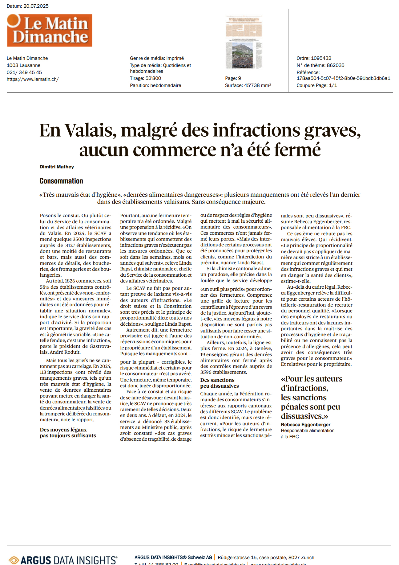 En cas de non-conformité détectée lors d’une inspection ou d’un prélèvement officiel, le SCAV impose à l’établissement concerné de prendre les mesures correctives nécessaires. Ces mesures s’appuient sur une décision administrative accompagnée d’émoluments. Si un danger pour les utilisateurs est identifié lors d’un contrôle, le SCAV peut ordonner la fermeture provisoire de l’installation de baignade ou douche concernée. Celle-ci reste en vigueur jusqu’à ce que l’établissement ait pris les mesures nécessaires et que les exigences légales soient à nouveau pleinement respectées.