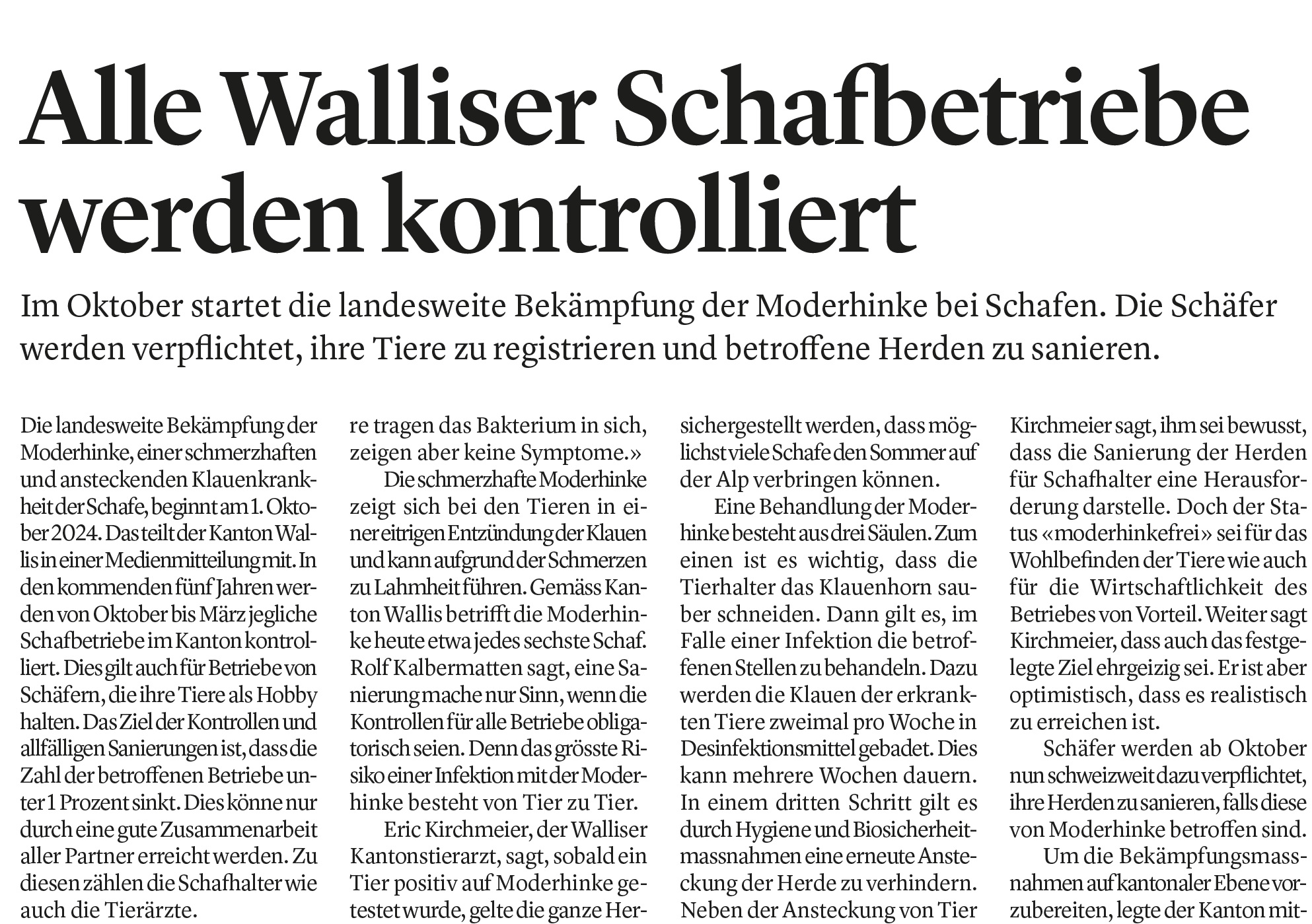 04.04.2024 | Walliser Bote | Moderhinke-Alle Walliser Schafbetriebe werden Kontrolliert