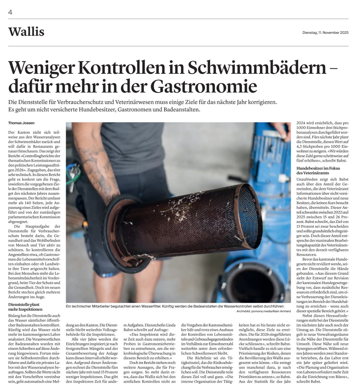 11.11.2025 | Walliser Bote | Weniger Kontrollen In Schwimmbädern - dafür mehr in der Gastronomie