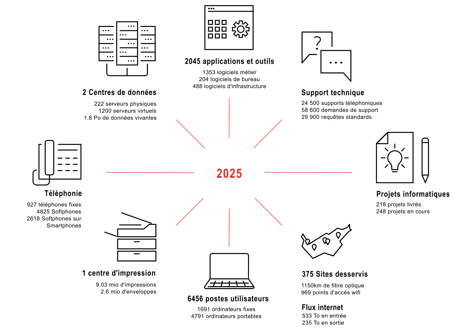 Que ce soit au travers de la mise à disposition de matériel nécessaire au travail de qualité, de développements d’outils internes ou au travers d’applications publiques, notre service œuvre chaque jour au développement pérenne de l’informatisation de l’État du Valais.
