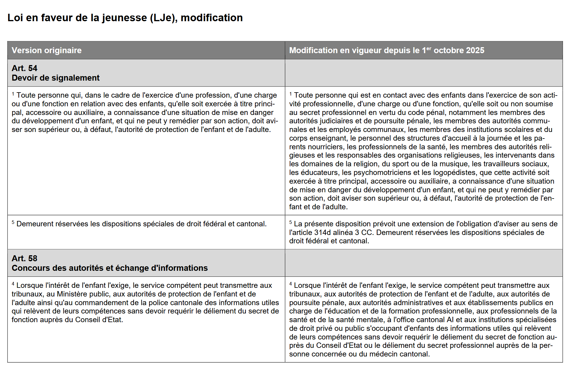 Des modifications sont apportées à la loi sur la jeunesse afin de l'adapter, d'une part, au droit fédéral et, d'autre part, aux réalités organisationnelles actuelles.