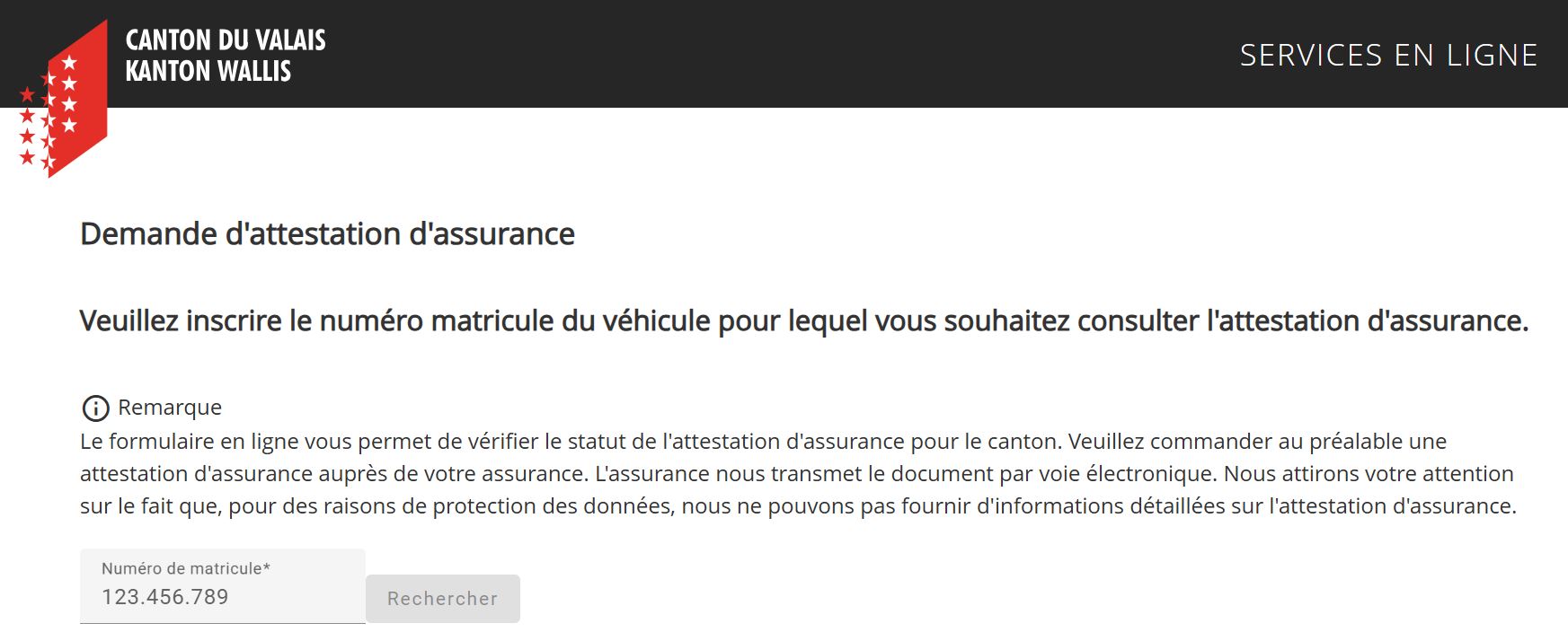 - une déclaration de détenteur dûment complétée et visée par la commune attestant du lieu de stationnement du véhicule en Valais si l'adresse à enregistrer n'est pas en Valais;