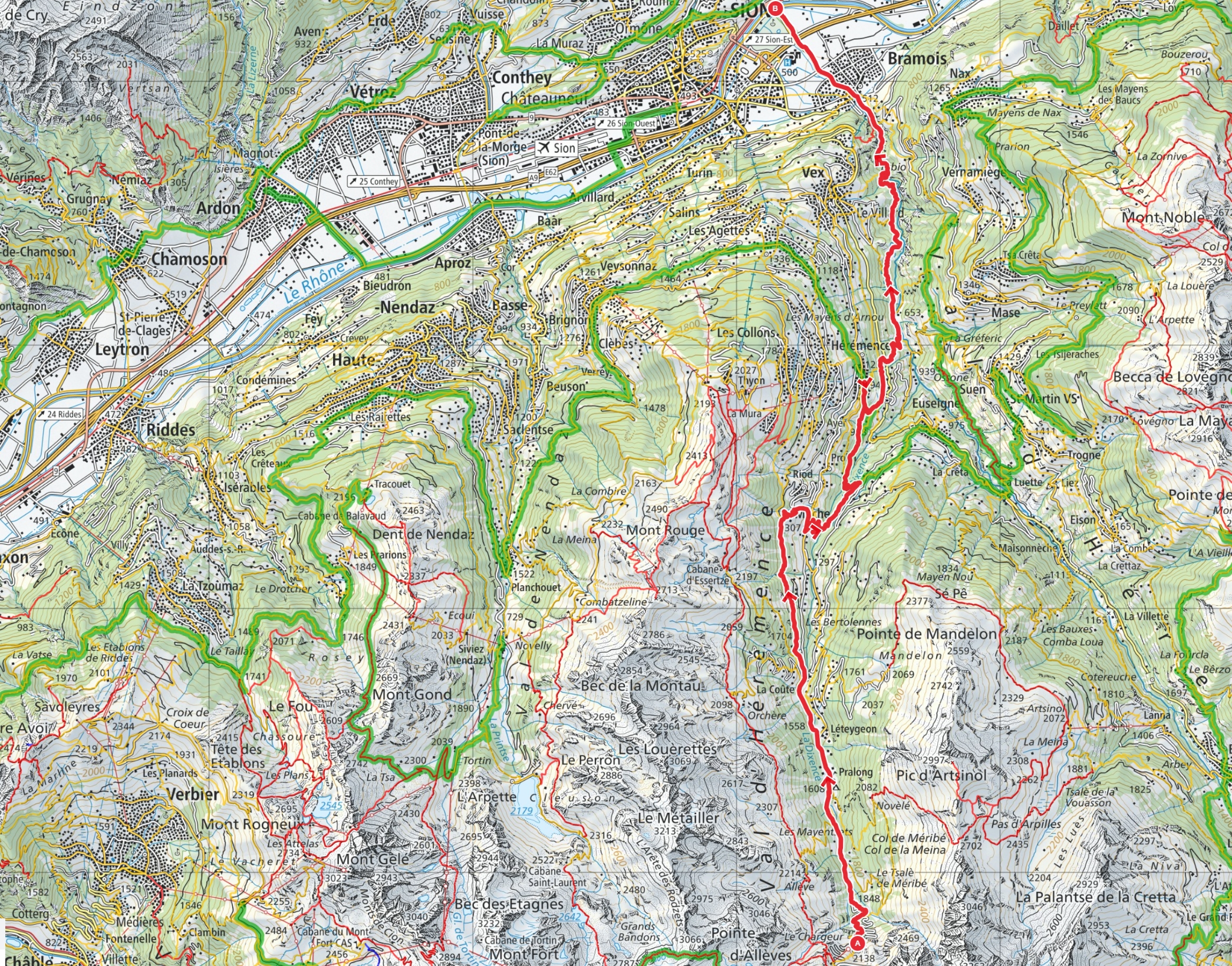La randonnée, de difficulté intermédiaire, peut se faire en une seule journée ou être divisée en deux étapes. La première relie la Grande Dixence à Hérémence sur environ 17 km, pour une durée d’environ 5 heures. Elle suit les gorges et offre des vues spectaculaires sur le Val des Dix, tout en longeant plusieurs ouvrages hydrauliques. La seconde étape, qui va de Hérémence à Sion, couvre également 17 km pour environ 5 h 15 de marche. Elle propose une descente progressive vers la capitale valaisanne.
