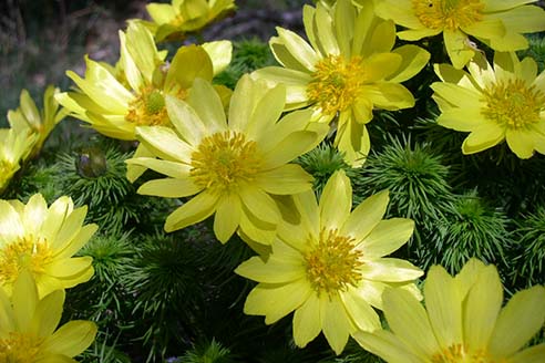 Ende März stehen die ersten Frühlings-Adonisröschen in voller Blüte, während sich die Knospen der umgebenden Gebüsche erst langsam öffnen. Bleibt das Wetter frisch, blühen sie bis Ende April weiter. Diese goldene Blume mag Nordhänge, wo sie vor spätem Frost geschützt bleibt. An allzu sonnigen Hängen würde sie zu früh blühen, wenn der Frost noch sein Unwesen treibt. Früher, im Rahmen der traditionellen Weidewirtschaft, wurden Schaf-und Ziegenherden auf die Weiden getrieben, auf denen das Frühlings-Adonisröschen wächst. Die Schafe vermieden jedoch diese giftige Pflanze und begünstigten somit ihre Entwicklung.