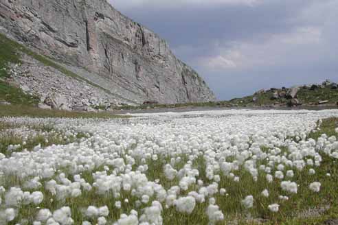 On distingue deux types de marais. Le premier, dénommé haut-marais ou tourbière, est exclusivement alimenté par des eaux pluviales très pauvres en nutriments. Plutôt rare en Valais, ce type de marais est absent du vallon de Réchy. Le deuxième, le bas-marais, est essentiellement alimenté par des eaux qui se sont plus ou moins enrichies en minéraux après avoir circulé dans le sol. Il est caractérisé par une flore adaptée à une humidité permanente, dont font partie les linaigrettes, illustrées ci-contre. Les bas-marais dominent largement le plateau de l’Ar du Tsan, qu’ils ornent de couleurs fauves dès le milieu de l’été.